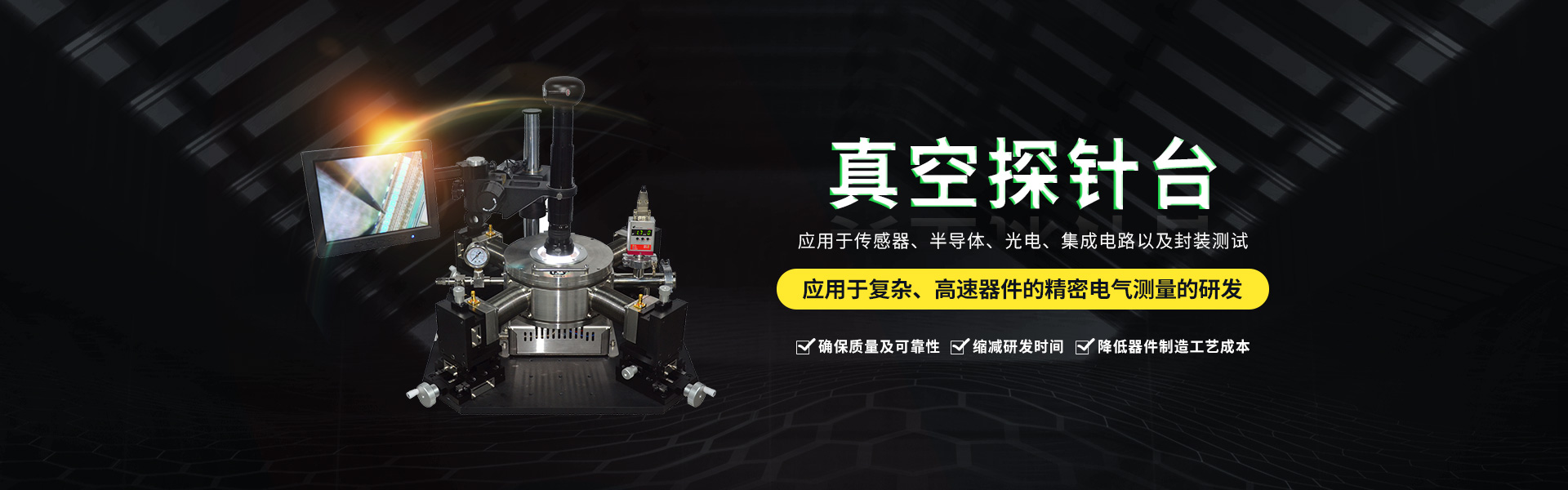 微型真空探針臺設計有進氣口和抽真空接口其真空度用機械泵可達<5Pa分子泵可達<-3Pa。真空信號連接處使用高級真空電極信號接頭,保證氣密性及抗干擾性能。使用時將需將待檢測的器件方在加熱臺面,探針尖處由...